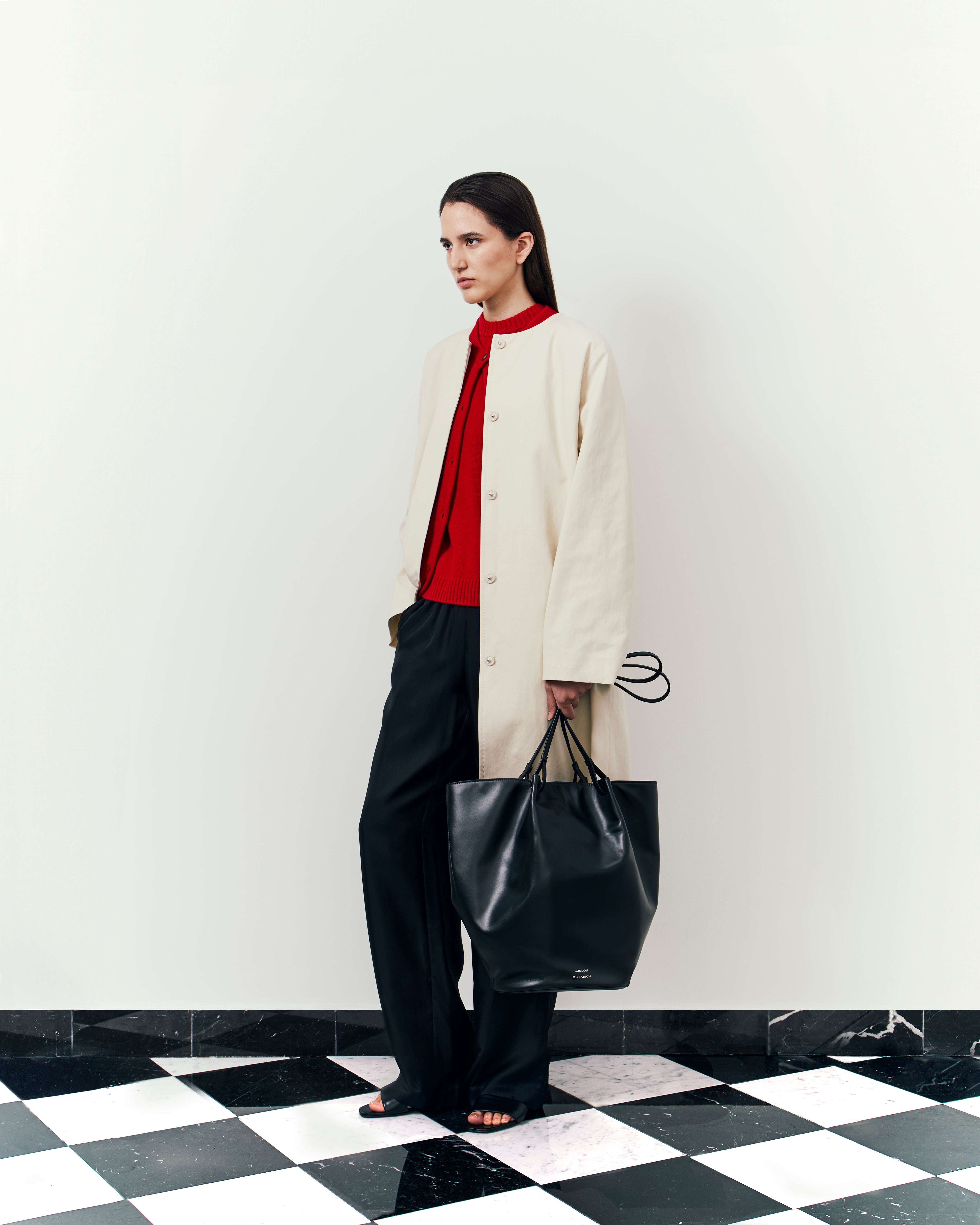 Following this thread, the season moves into Io Sono L’Amore (2009) where Tilda Swinton plays Emma, a woman cloaked in Milanese luxury. Her cold composed exterior gradually gives way to something more raw and real, offering a quiet response to the collection’s first act, but always grounded within the Loulou de Saison framework: “You can transport the whole story into a hotel particulier in Paris and it would still make sense,” notes Creative Director Chloé Harrouche.